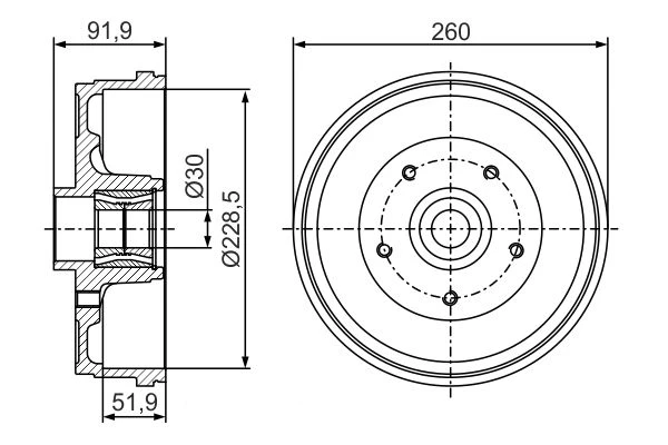 | Bremstrommeldurchmesser außen (mm) | 260 |